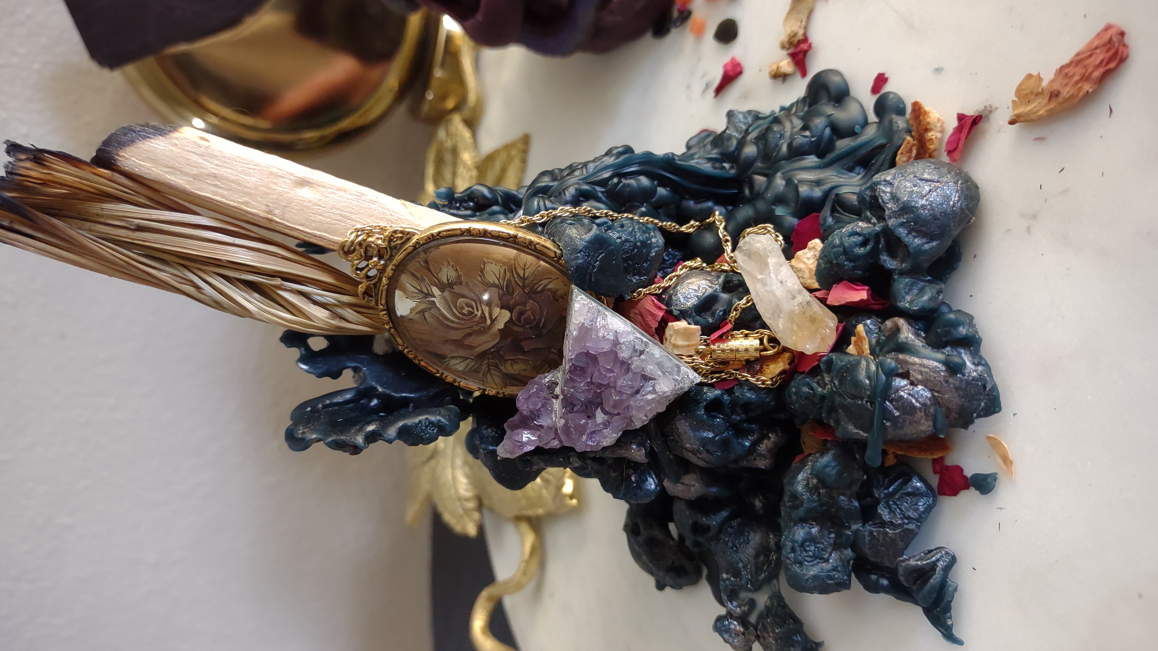 1. as decor to go on my altar with my Great Grandmother's, Grand Father's & Grand Mother's jewelry, a photo/other personal belonging, nestled inside with herbs, crystals & a smudge stick.